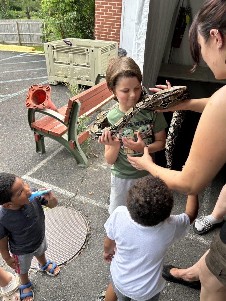 Later on, in early July, we had a magical visit from Wild Things Preserve! Animals like snakes, ducks, parrots, and reptiles were met with pure excitement from the kids throughout the afternoon. They were able to feed, pet, and hold the animals while also learning more about their habitats and backgrounds. Everyone truly had a blast and it was an incredible and educational afternoon.